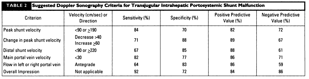 Autre référence utile : Article - AJR - Evaluation And Management Of Transjugular Intrahepatic Portosystemic Shunts