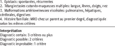 Critères de Curaçao pour le diagnostic clinique de la maladie de Rendu-Osler (MRO)