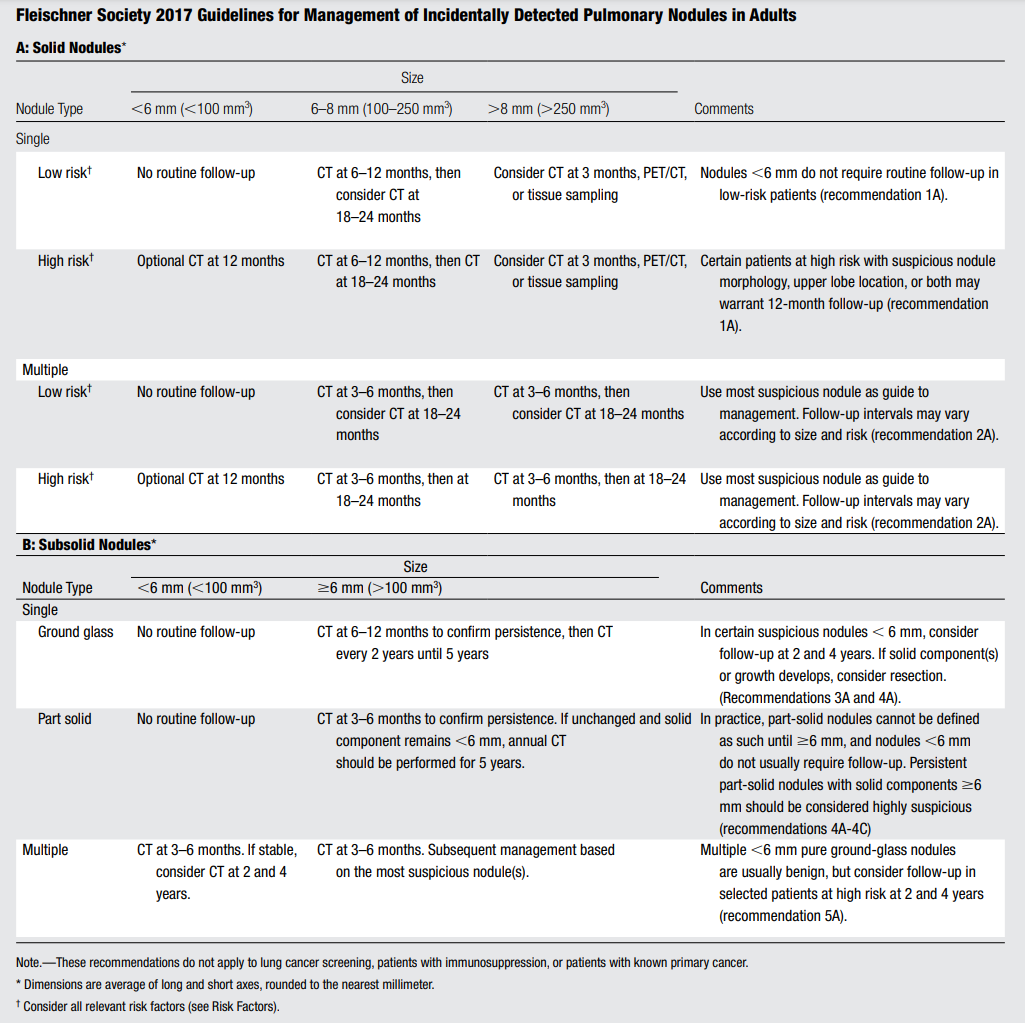 Suivi d'un nodule pulmonaire : recommandations de la Fleischner Society (2017)